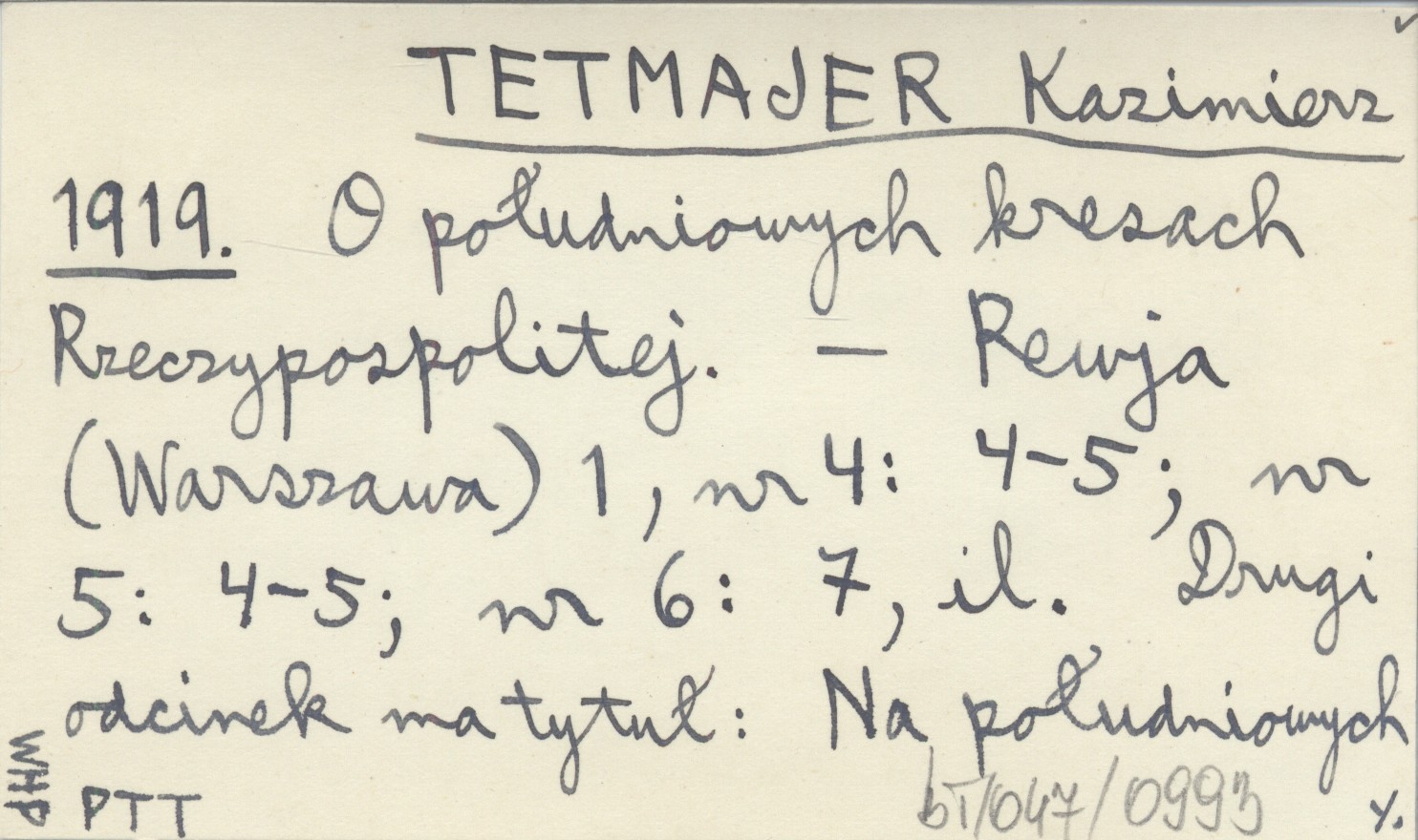 TETMAJER Kazimierz 1919 O południowych kresach Rzeczypospolitej.