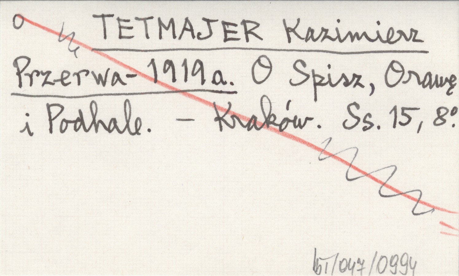 Przerwa- TETMAJER Kazimierz 1919 a O Spisz, Orawę i Podhale.