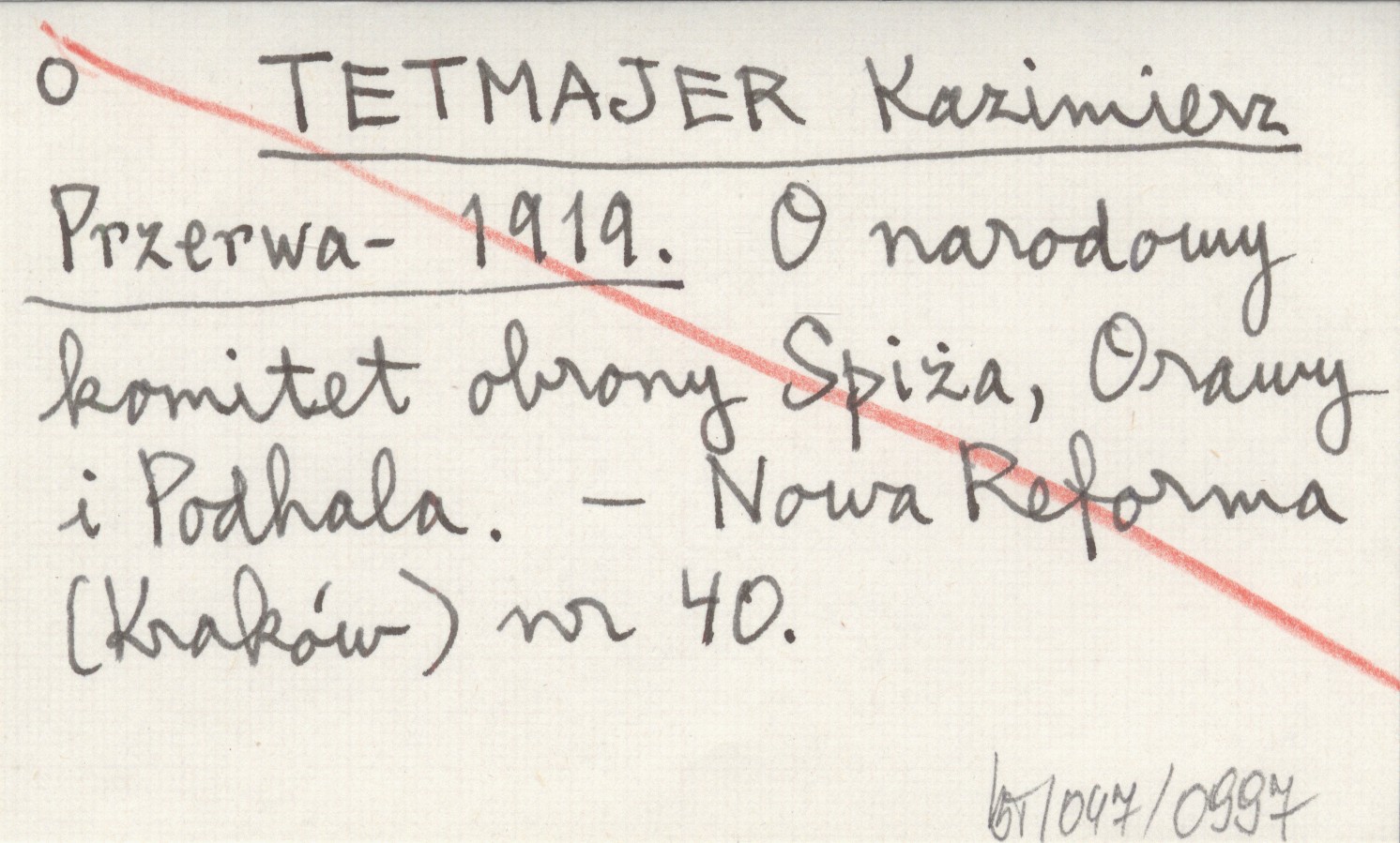 Przerwa- TETMAJER Kazimierz 1919 O narodowy komitet obrony Spiża, Orawy i Podhala.