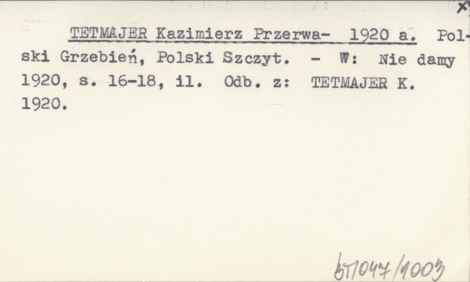 Przerwa- TETMAJER Kazimierz 1920 a Polski Grzebień, Polski Szczyt.