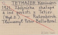 TETMAJER Kazimierz 1921 Zbójnícka chalupa a iné povesti z Tatier.