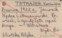 Przerwa TETMAJER Kazimierz 1922 a Janosik Nędza Litmanowski. Powieść, Legendy Tatr część druga.
