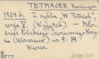 TETMAJER Kazimierz 1924 b Z cyklu "W Tatrach", serja V. (Wyjątek).
