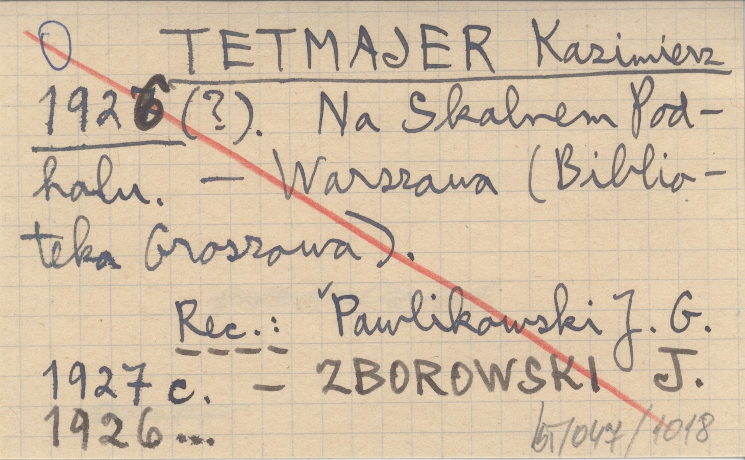 Warszawa (Biblioteka Groszowa) , REC: PAWLIKOWSKI J. G. 1927 c ; ZBOROWSKI J. 1926... ;