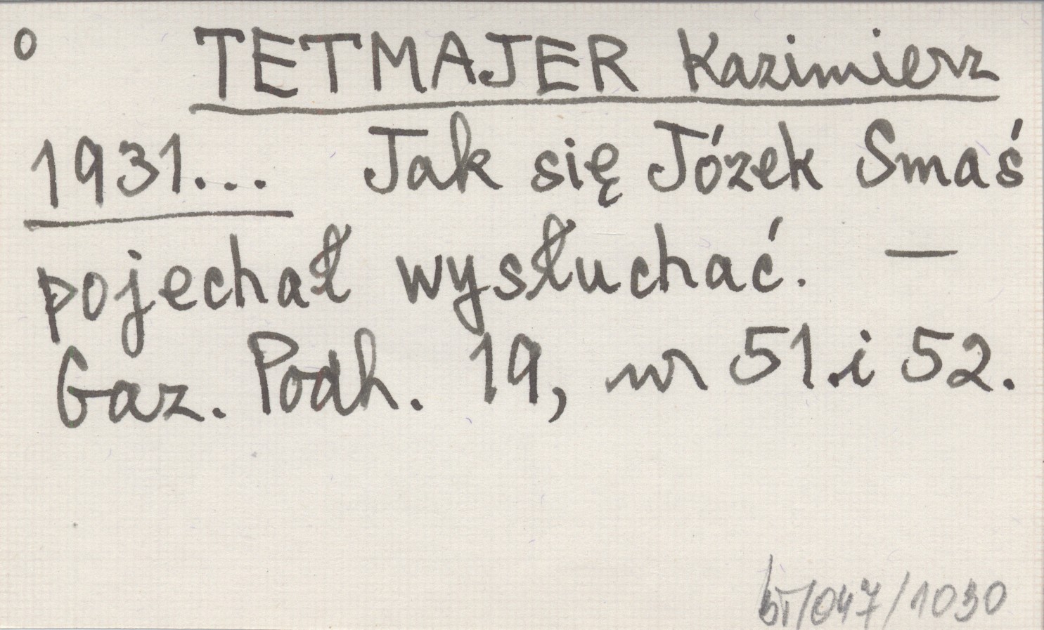 TETMAJER Kazimierz 1931... Jak się Józek Smaś pojechał wysłuchać.
