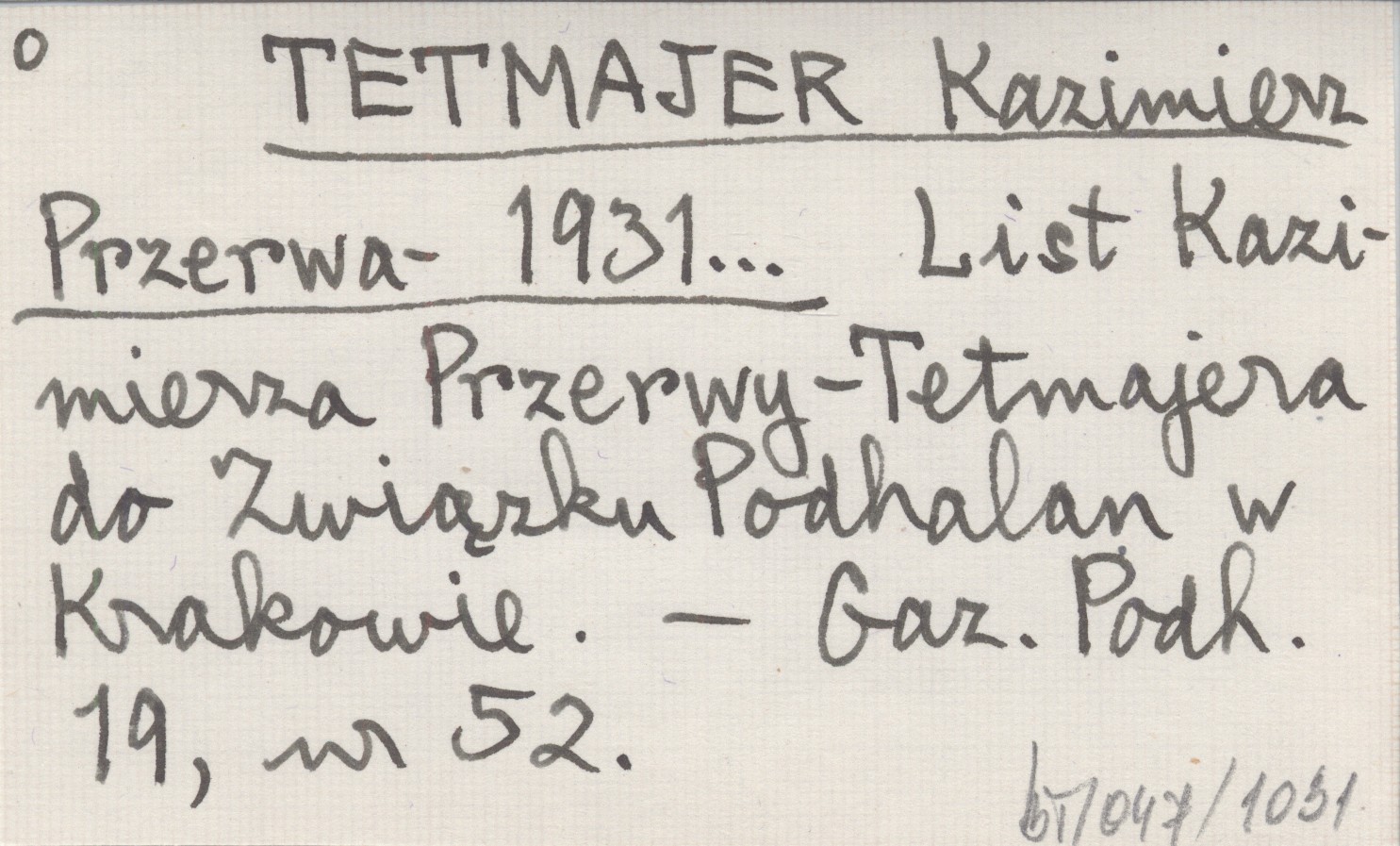 Przerwa- TETMAJER Kazimierz 1931... List Kazimierza Przerwy-Tetmajera do Związku Podhalan w Krakowie.