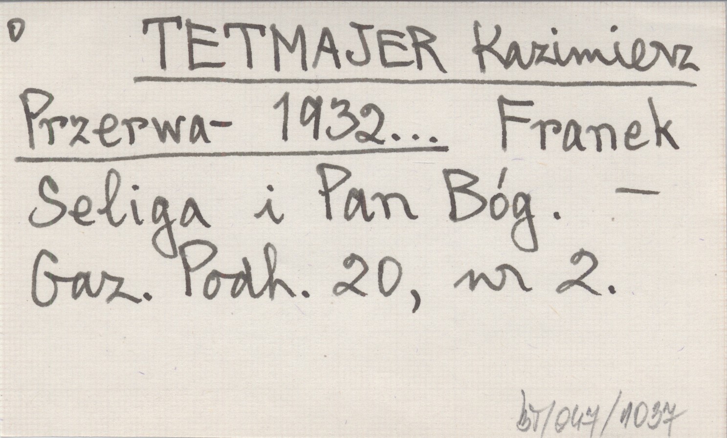 Przerwa- TETMAJER Kazimierz 1932... Franek Seliga i Pan Bóg.