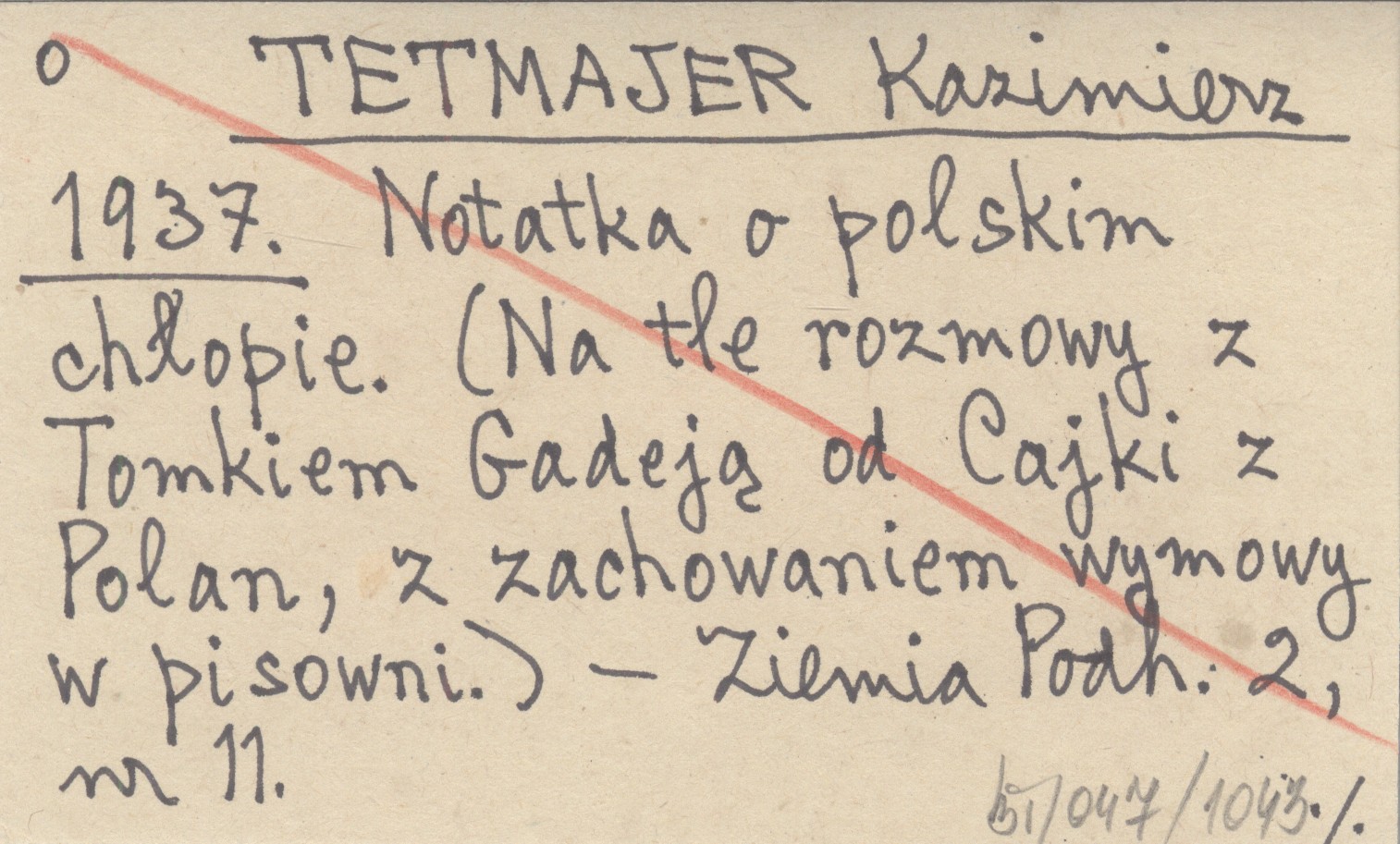 TETMAJER Kazimierz 1937 Notatka o polskim chłopie. (Na tle rozmowy z Tomkiem Gadeją od Cajki z Polan, z zachowaniem wymowy w pisowni).