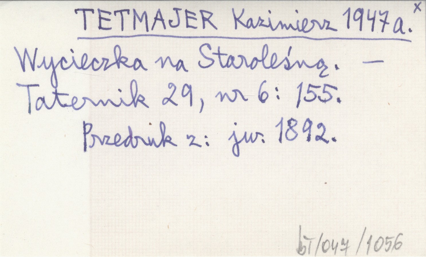 TETMAJER Kazimierz 1947 a Wycieczka na Staroleśną.