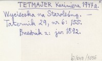 TETMAJER Kazimierz 1947 a Wycieczka na Staroleśną.