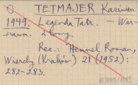 TETMAJER Kazimierz 1949 Legenda Tatr.