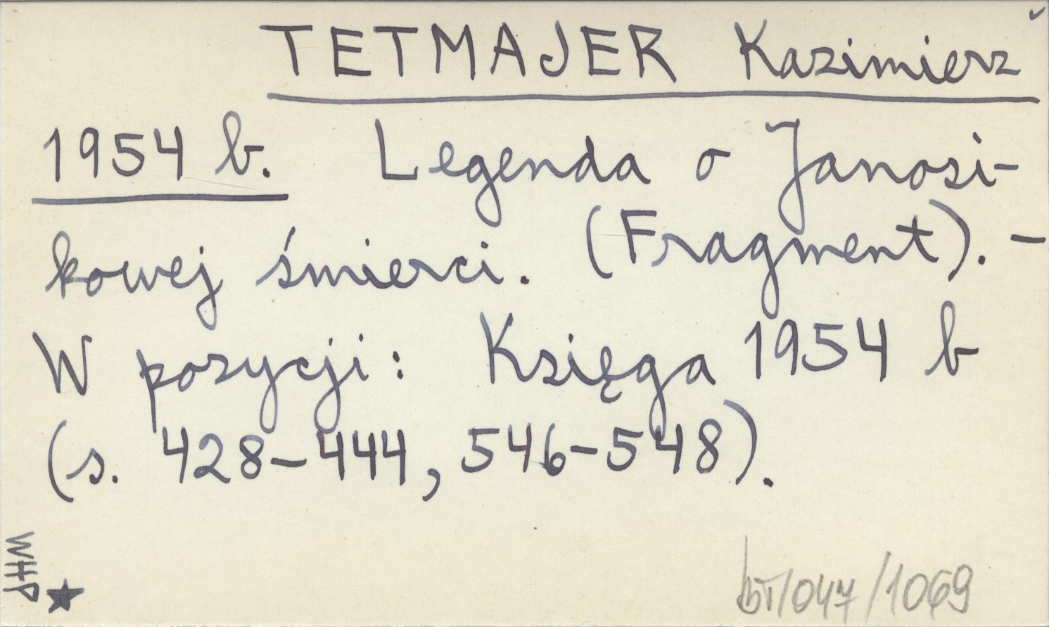TETMAJER Kazimierz 1954 b Legenda o Janosikowej śmierci. (Fragment).