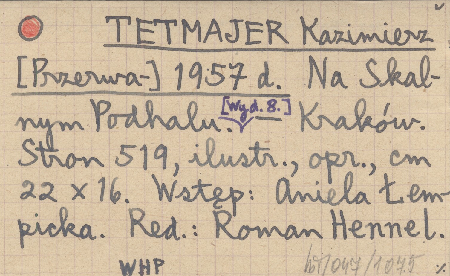 [Przerwa-] TETMAJER Kazimierz RED: HENNEL, Roman. ; 1957 d Na Skalnym Podhalu.