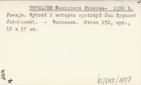 Przerwa- TETMAJER Kazimierz 1958 b Poezje. Wybrał i wstępem opatrzył Jan Zygmunt Jakubowski.