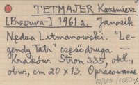 [Przerwa-] TETMAJER Kazimierz 1961 a Janosik Nędza Litmanowski. "Legendy Tatr" część druga.