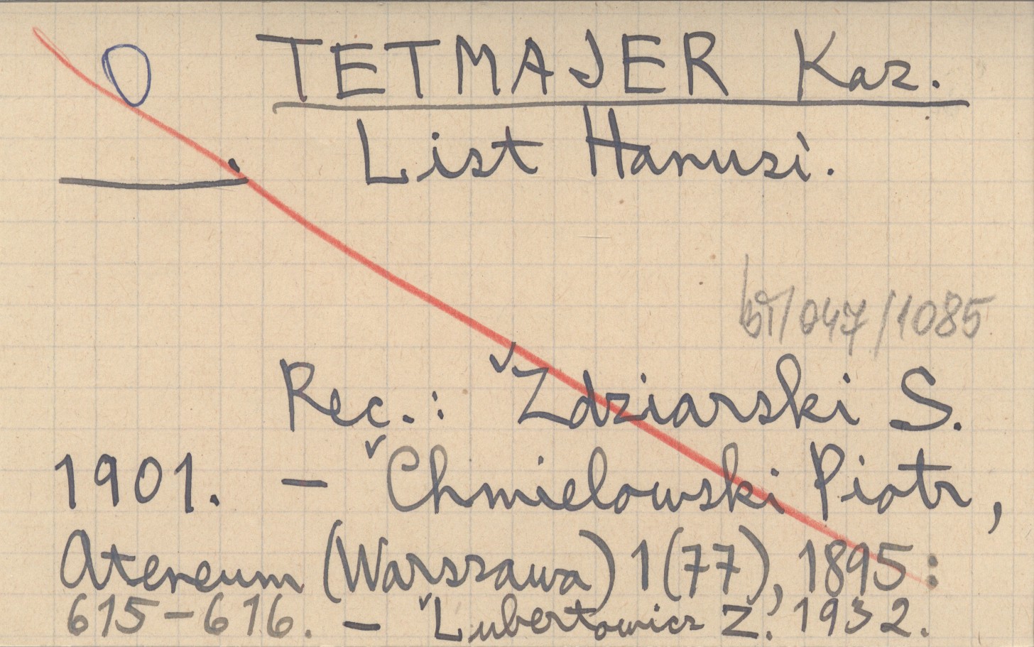 , REC: ZDZIARSKI S. 1901 ; CHMIELOWSKI Piotr, Ateneum (Warszawa) 1 (77), 1895: 615-616 ; LUBERTOWICZ Z. 1932 ;