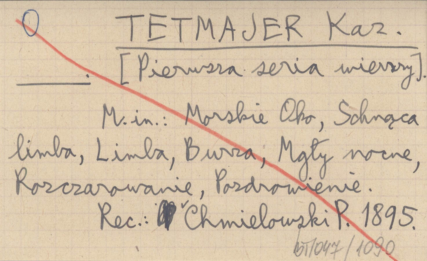, M. in. Morskie Oko, Schnąca limba, Limba, Burza, Mgły nocne, Rozczarowanie, Pozdrowienie. REC: CHMIELOWSKI P. 1895