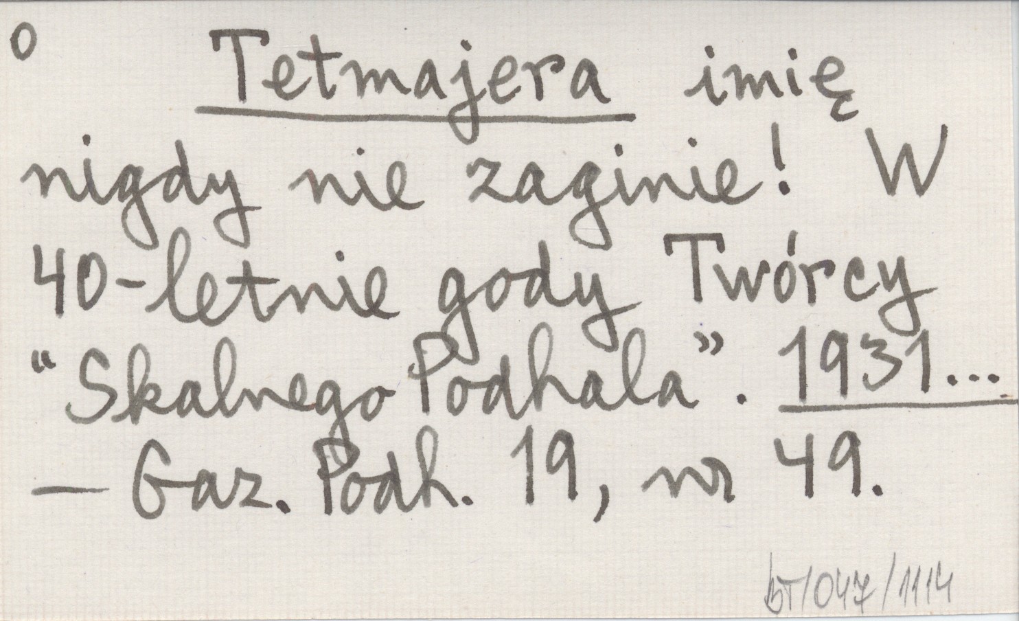 Tetmajera imię nigdy nie zaginie! W 40-letnie gody Twórcy "Skalnego Podhala". 1931...