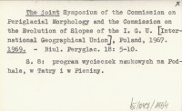 The joint Symposium of the Commission on the Evolution of Slopes of the I. G. U. [International Geographical Union], Poland, 1967. 1969