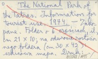 The National Park of the Tatras. Information for tourist use. 1974