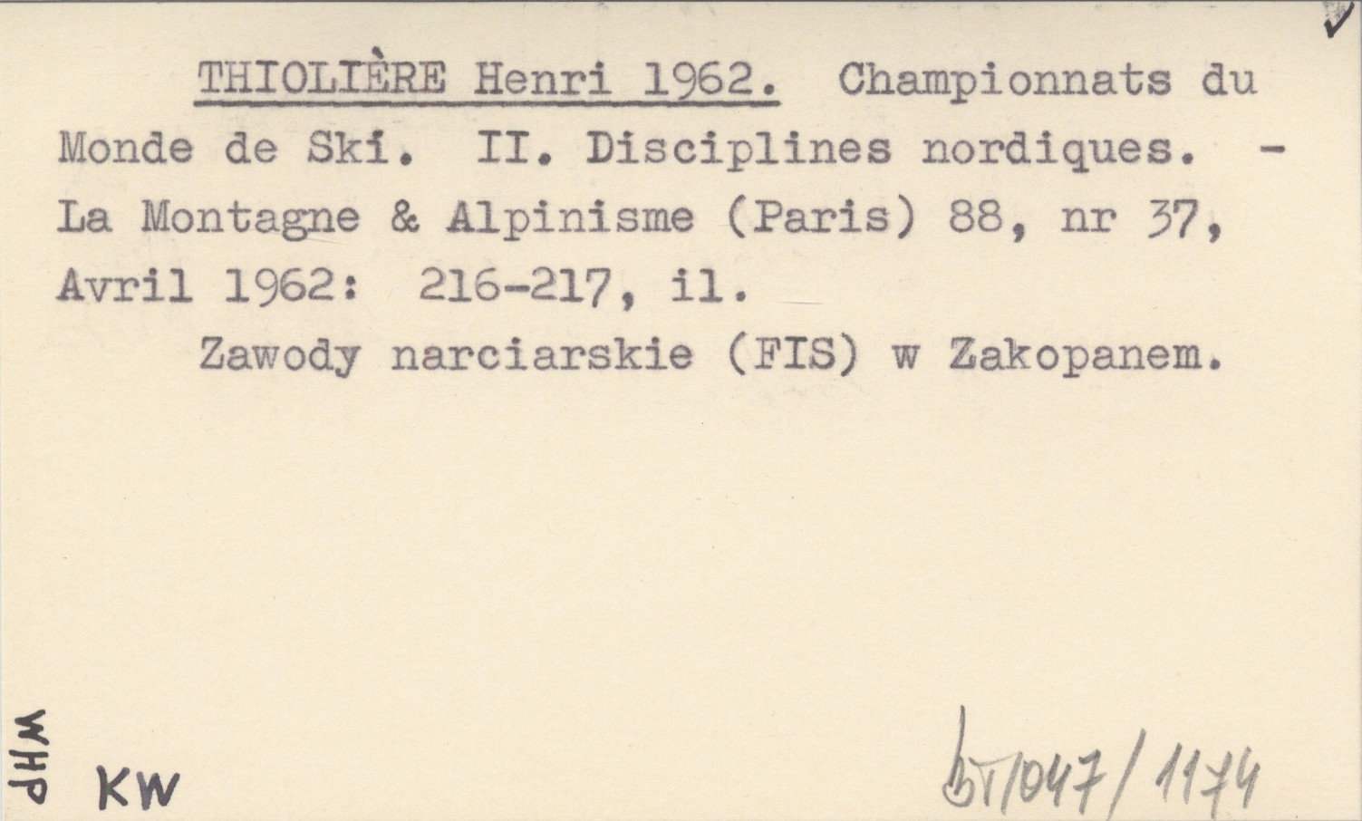 THIOLIÉRE Henri 1962 Championnats du Monde de Ski. II. Disciplines nordiques.