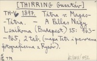 TH-V [THIRRING Gusztáv] 1897 Tátra v. Magas-Tátra.