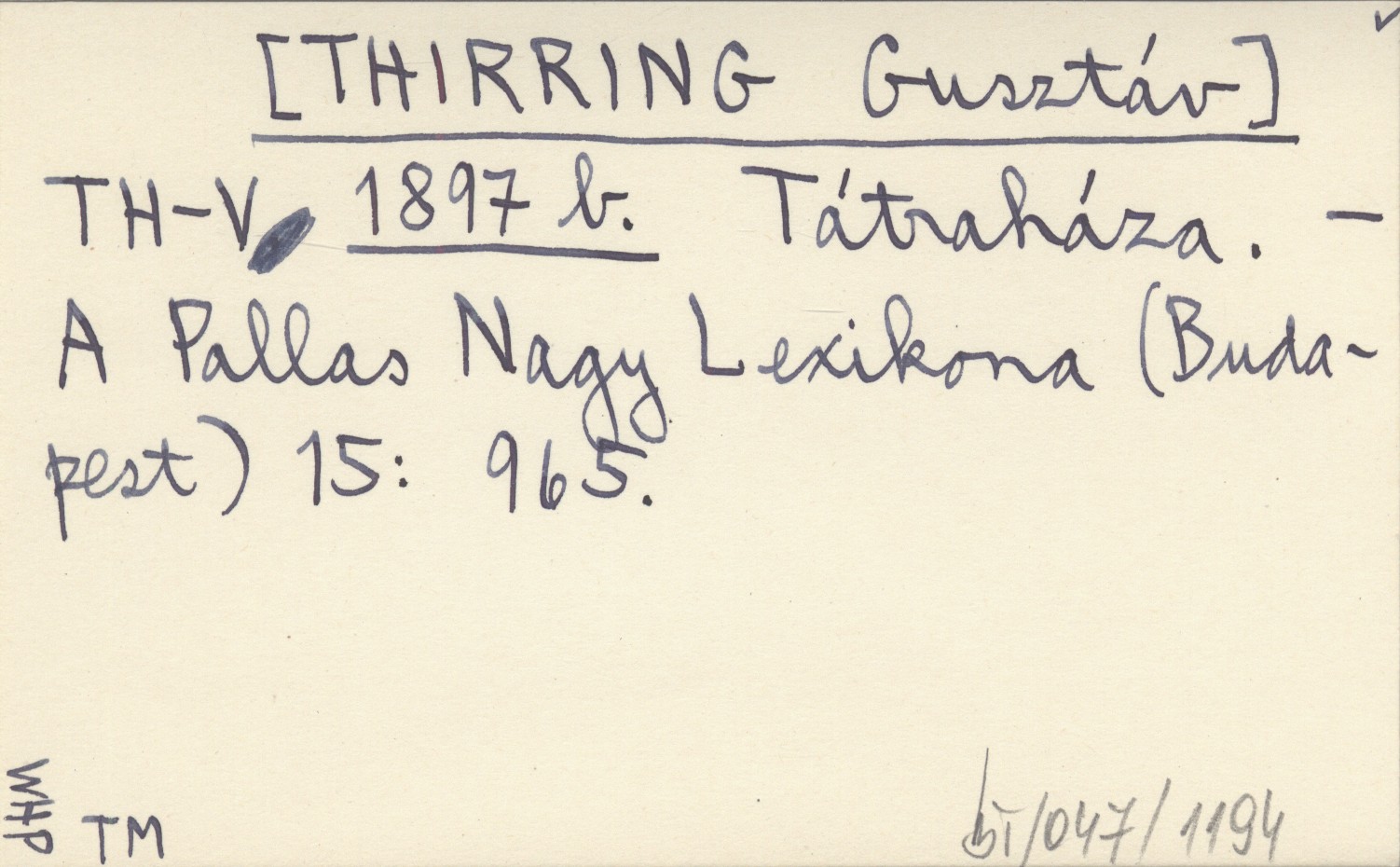 TH-V [THIRRING Gusztáv]