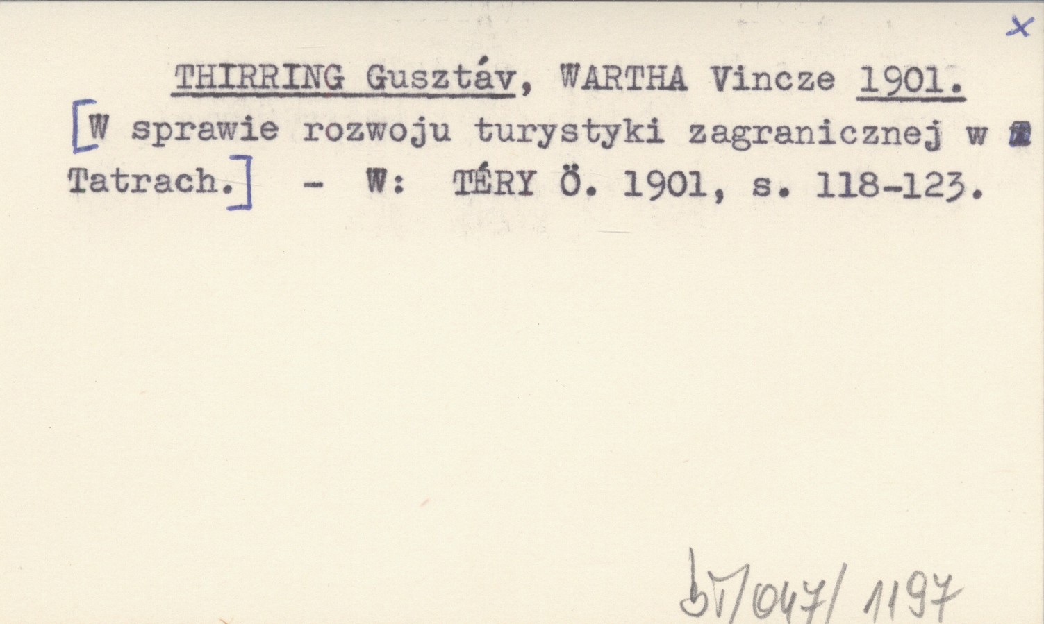 THIRRING Gusztáv WARTHA, Vincze. ; 1901 [W sprawie rozwoju turystyki zagranicznej w Tatrach.]