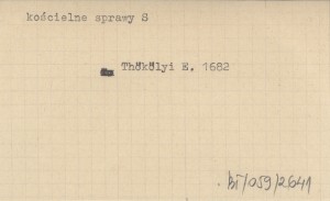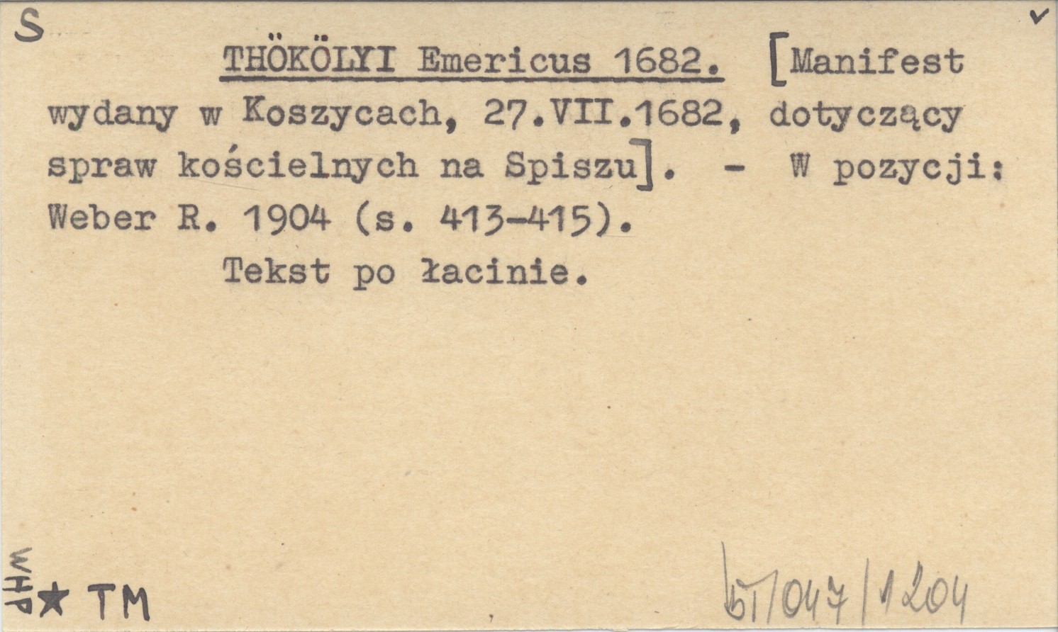 THÖKÖLYI Emericus 1682 [Manifest wydany w Koszycach, 27.VII.1682, dotyczący spraw kościelnych na Spiszu.]