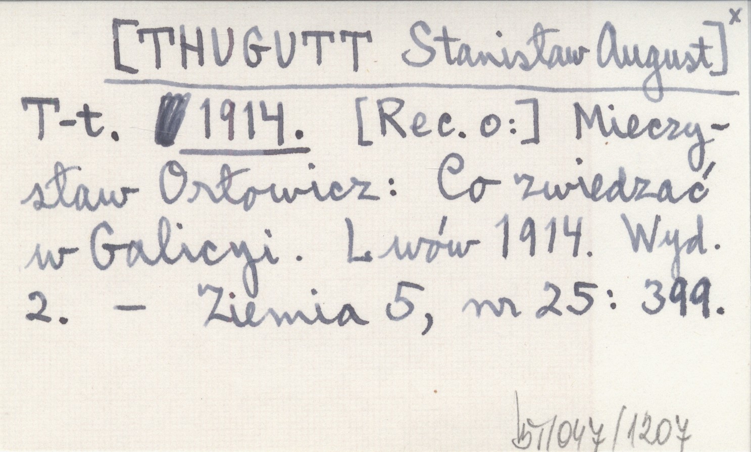 T-t. [THUGUTT Stanisław August] 1914 [Rec. o:] Mieczysław Orłowicz: Co zwiedzać w Galicyi. Lwów 1914. Wyd. 2.