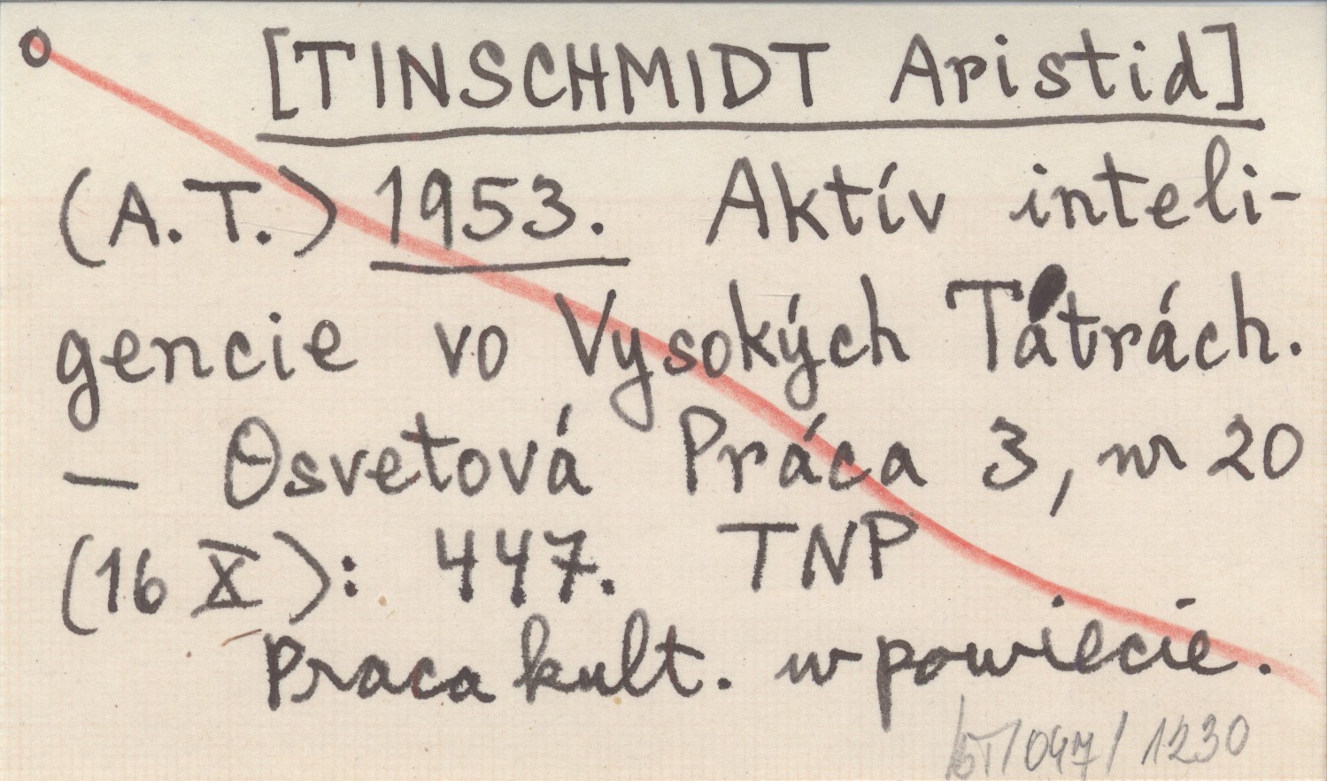 (A. T.) [TINSCHMIDT Aristid] 1953 Aktív inteligencie vo Vysokých Tatrách.