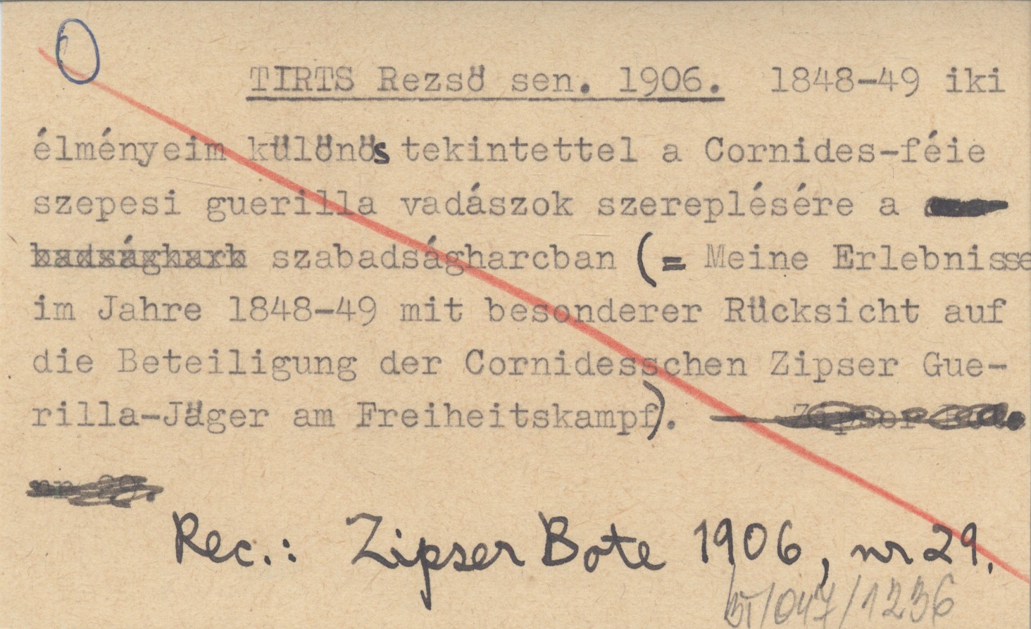 TIRTS Rezső sen. 1906 1848-49 iki élményeim különös tekintettel a Cordines-féie szepesi guerilla vadászok szereplésére a szabadságharcban (= Meine Erlebnisse im Jahre 1848-49 mit besenderer Rücksicht auf die Beteiligung der Cornidesschen Zupser Guerilla-Jäger am Freiheitskampf).