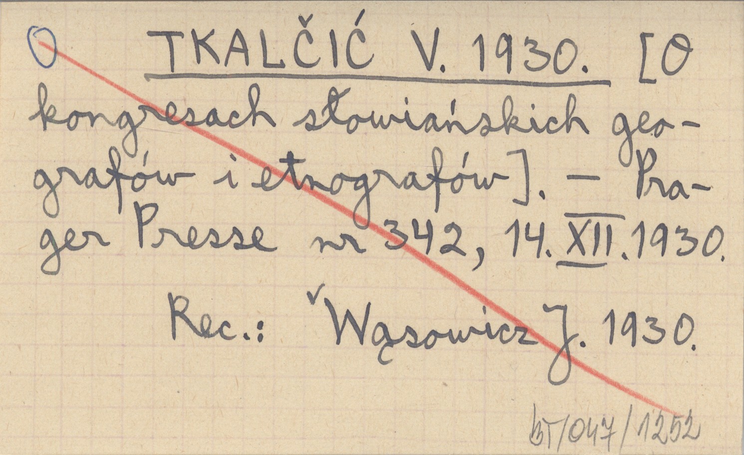 TKALČIĆ V. 1930 [O kongresach słowiańskich geografów i etnografów.]