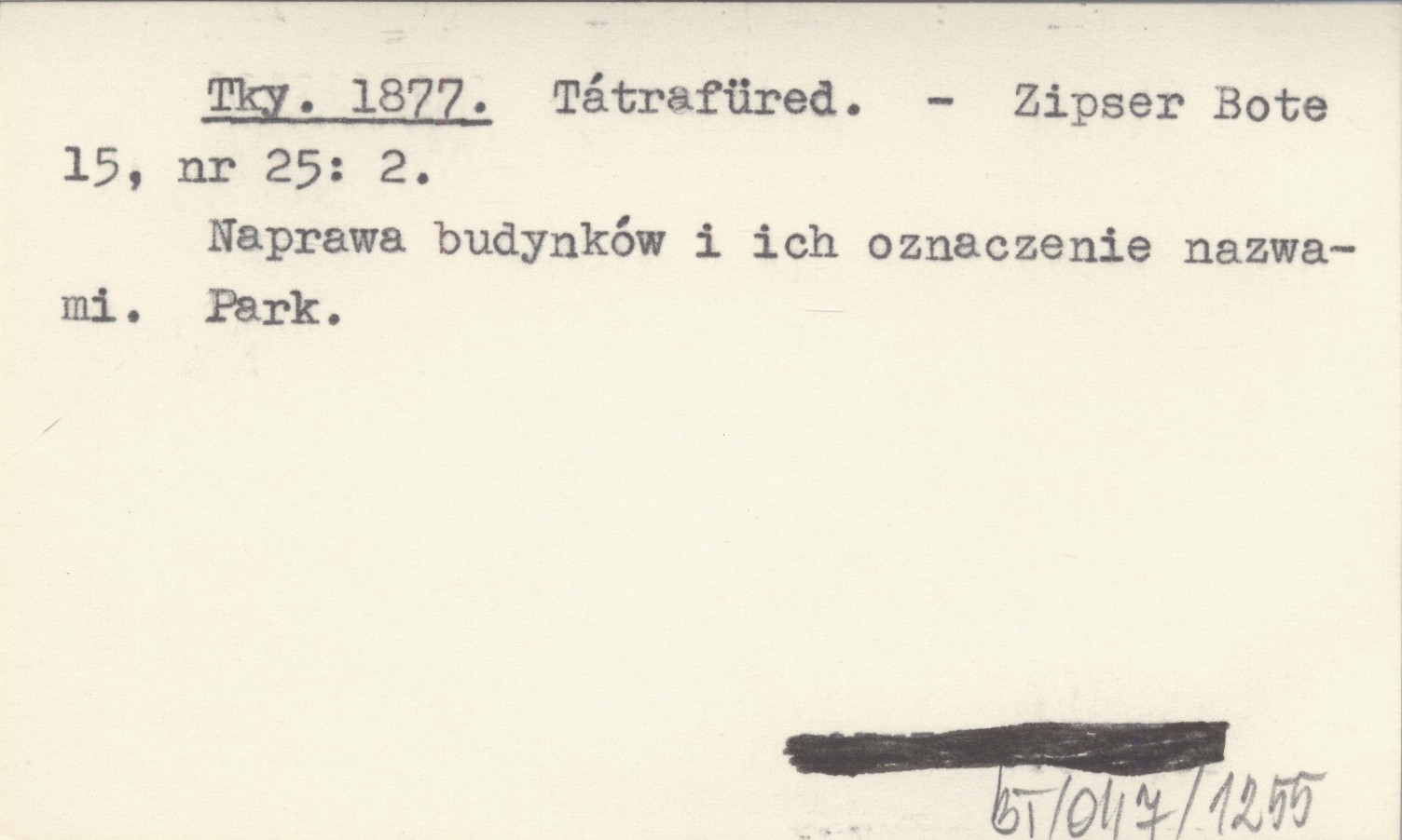 Zipser Bote, 15, nr 25: 2. Naprawa budynków i ich oznaczenie nazwami. Park.