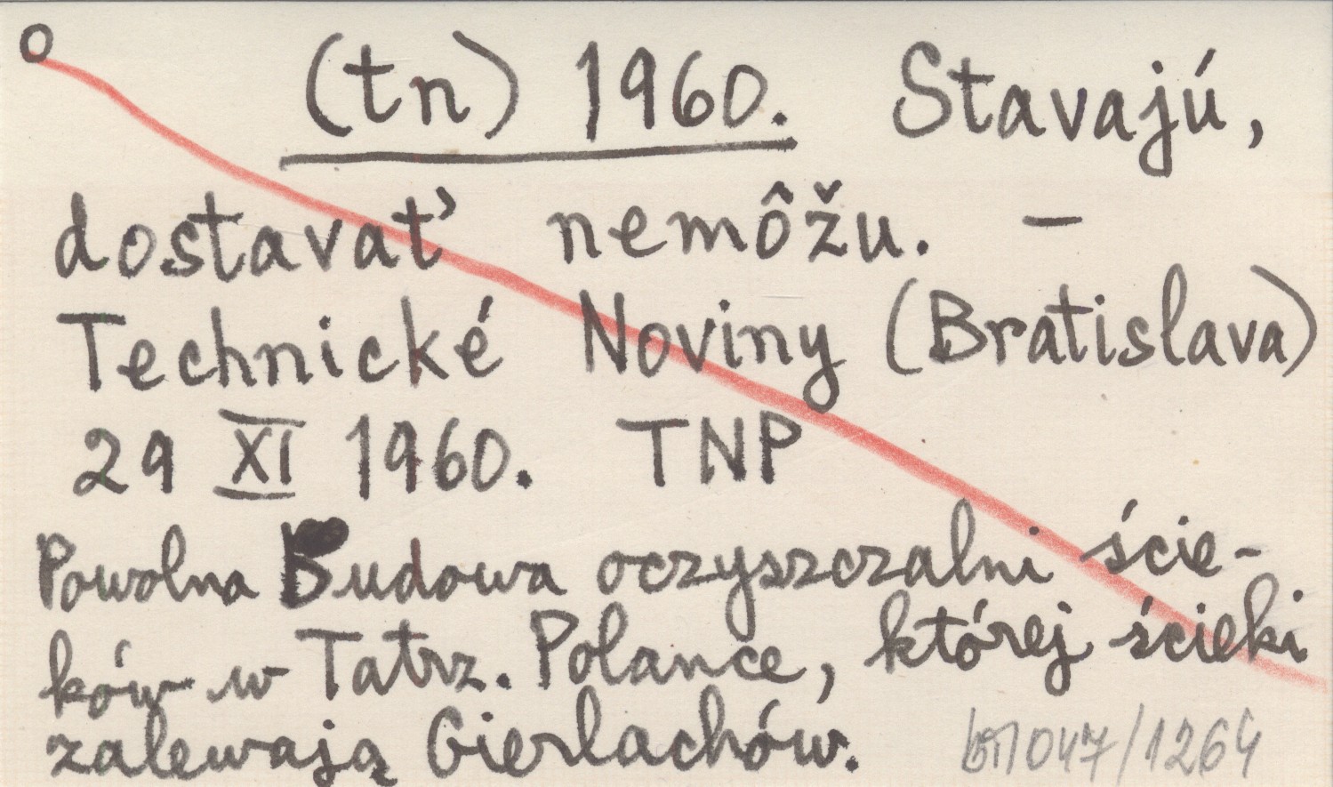 Technické Noviny (Bratislava) , 29 XI 1960. Powolna budowa oczyszczalni ścieków w Tatrzańskiej Polance, której ścieki zalewają Gierlachów.