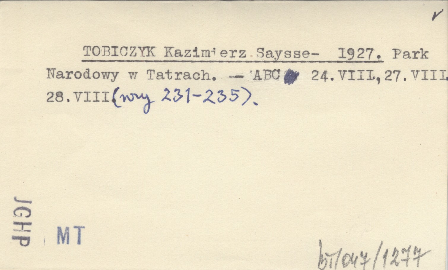 TOBICZYK Kazimierz Saysse- 1927 Park Narodowy w Tatrach.