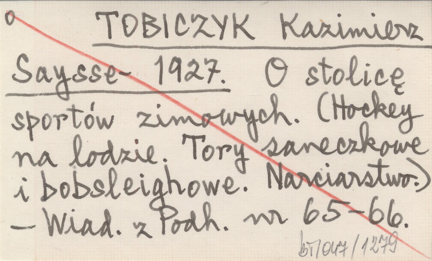 TOBICZYK Kazimierz Saysse- 1927 O stolicę sportów zimowych. (Hockey na lodzie. Tory saneczkowe i bobsleighowe. Narciarstwo).