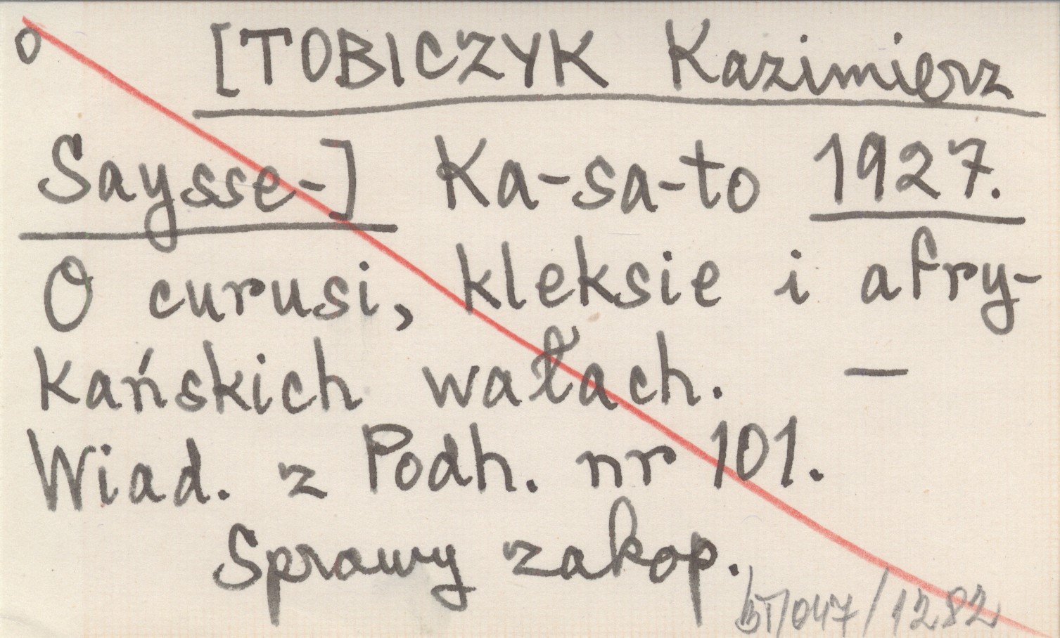 Ka-sa-to [TOBICZYK Kazimierz Saysse-] 1927 O curusi, kleksie i afrykańskich wałach.