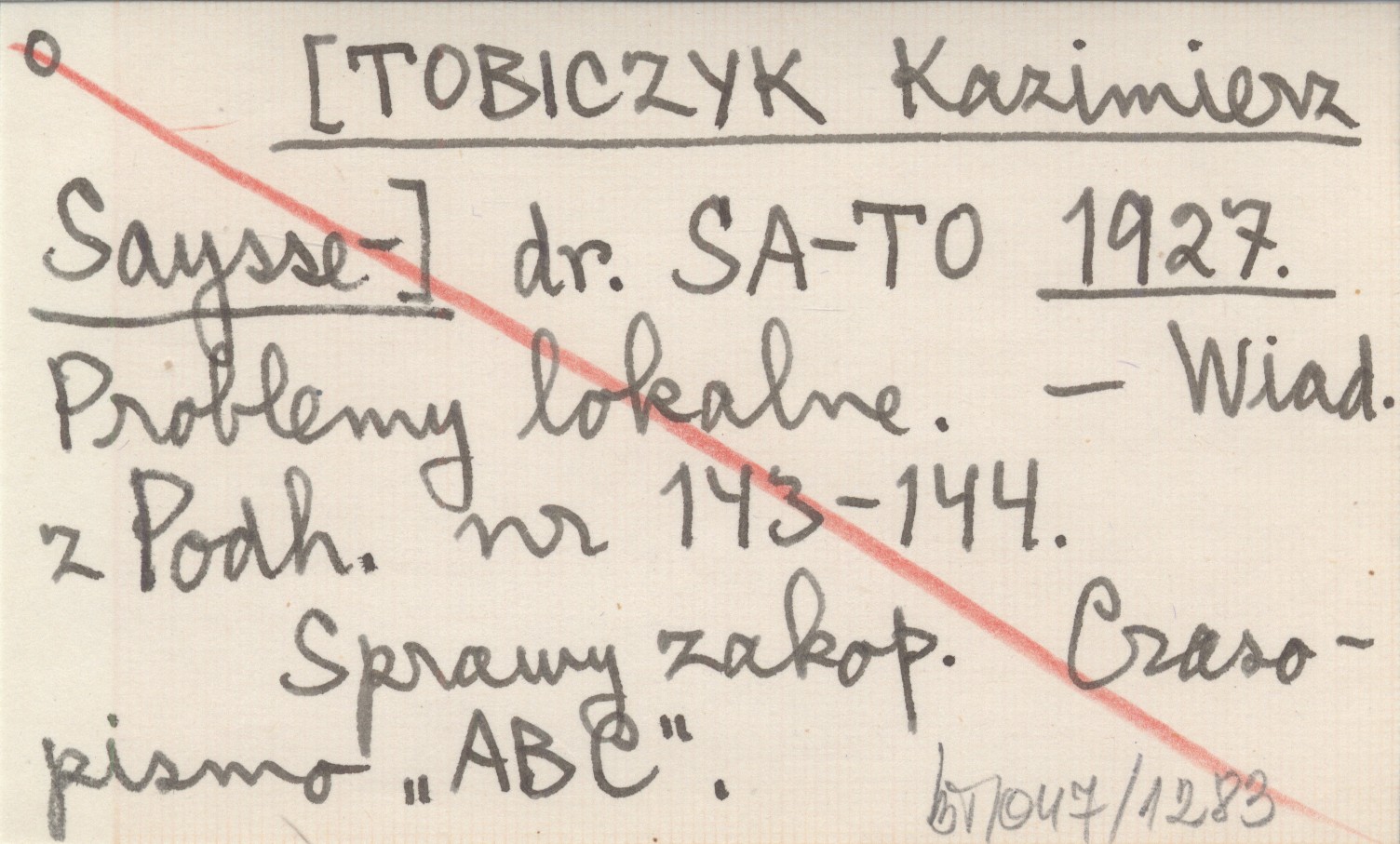 dr. SA-TO [TOBICZYK Kazimierz Saysse-] 1927 Problemy lokalne.