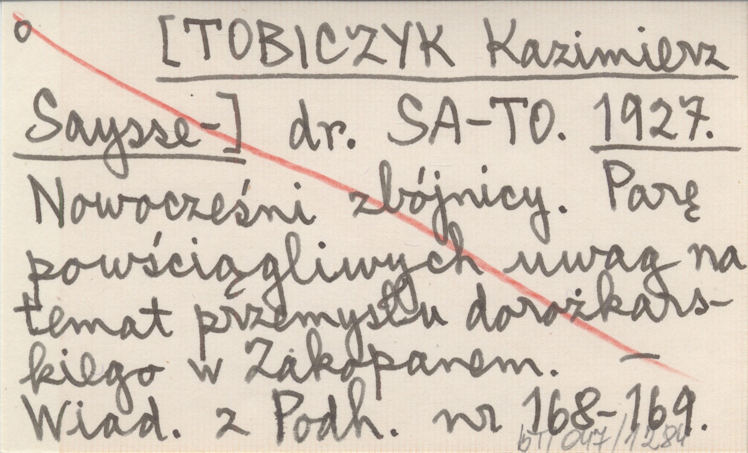 dr. SA-TO [TOBICZYK Kazimierz Saysse-] 1927 Nowocześni zbójnicy. Parę powściągliwych uwag na temat przemysłu dorożkarskiego w Zakopanem.