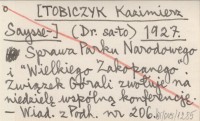 (Dr. sa-to) [TOBICZYK Kazimierz Saysse-] 1927 Sprawa Parku Narodowego i "Wielkiego Zakopanego". Związek Górali zwołuje na niedzielę wspólną konferencję.