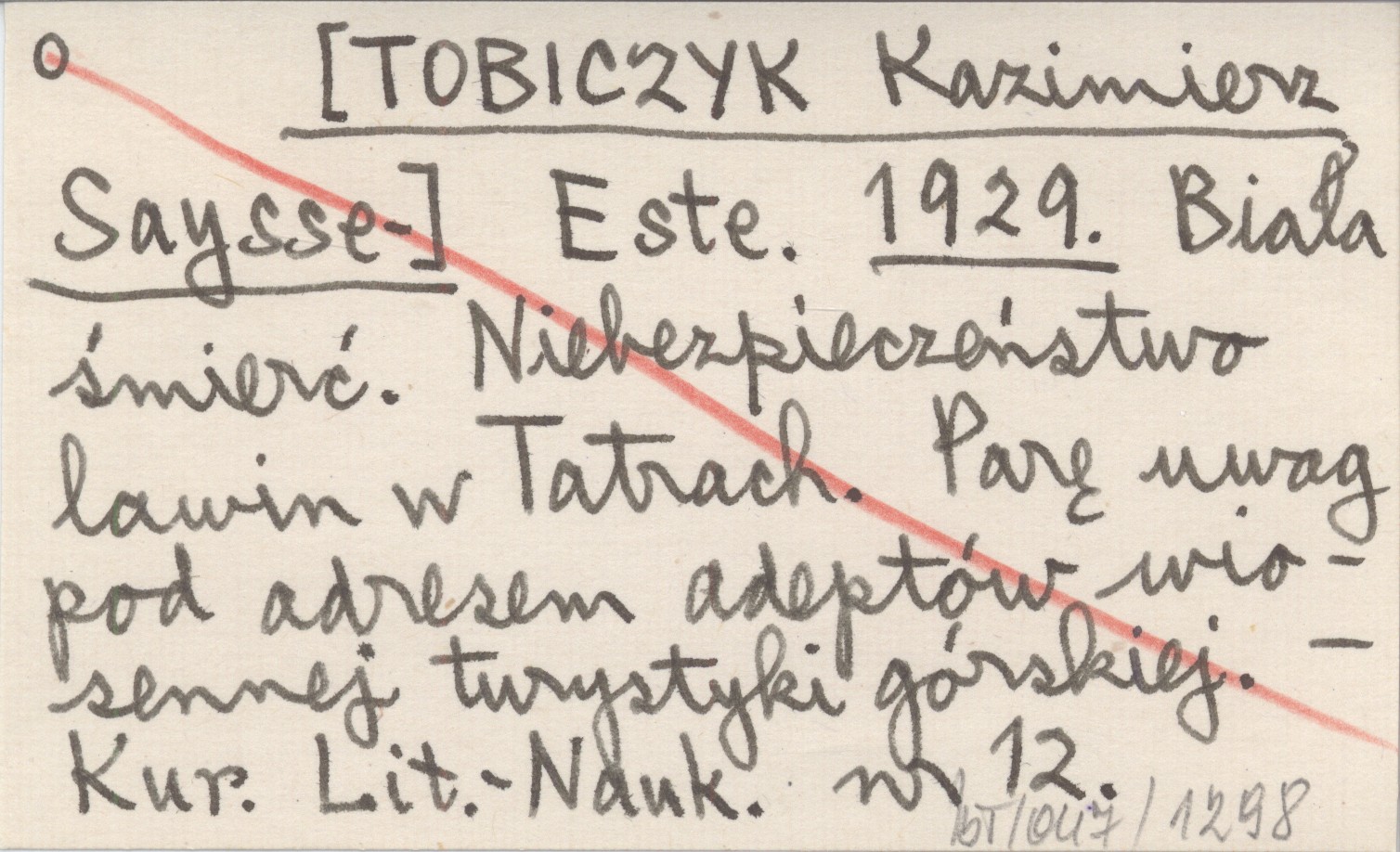 Este. [TOBICZYK Kazimierz Saysse-] 1929 Biała śmierć. Niebezpieczeństwo lawin w Tatrach. Parę uwag pod adresem adeptów wiosennej turystyki górskiej.
