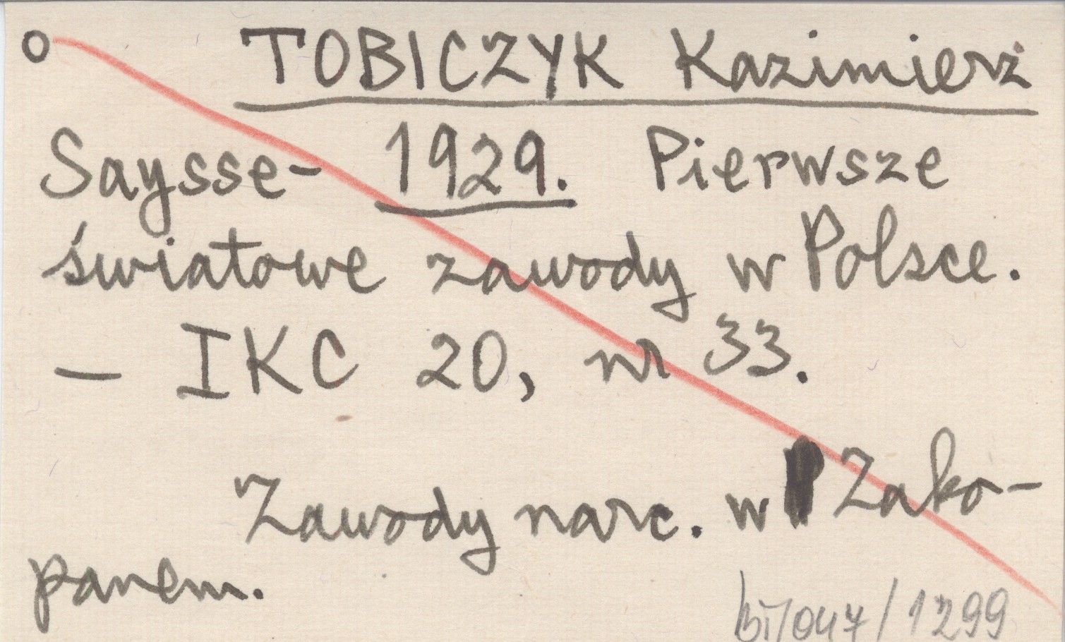 TOBICZYK Kazimierz Saysse- 1929 Pierwsze światowe zawody w Polsce.