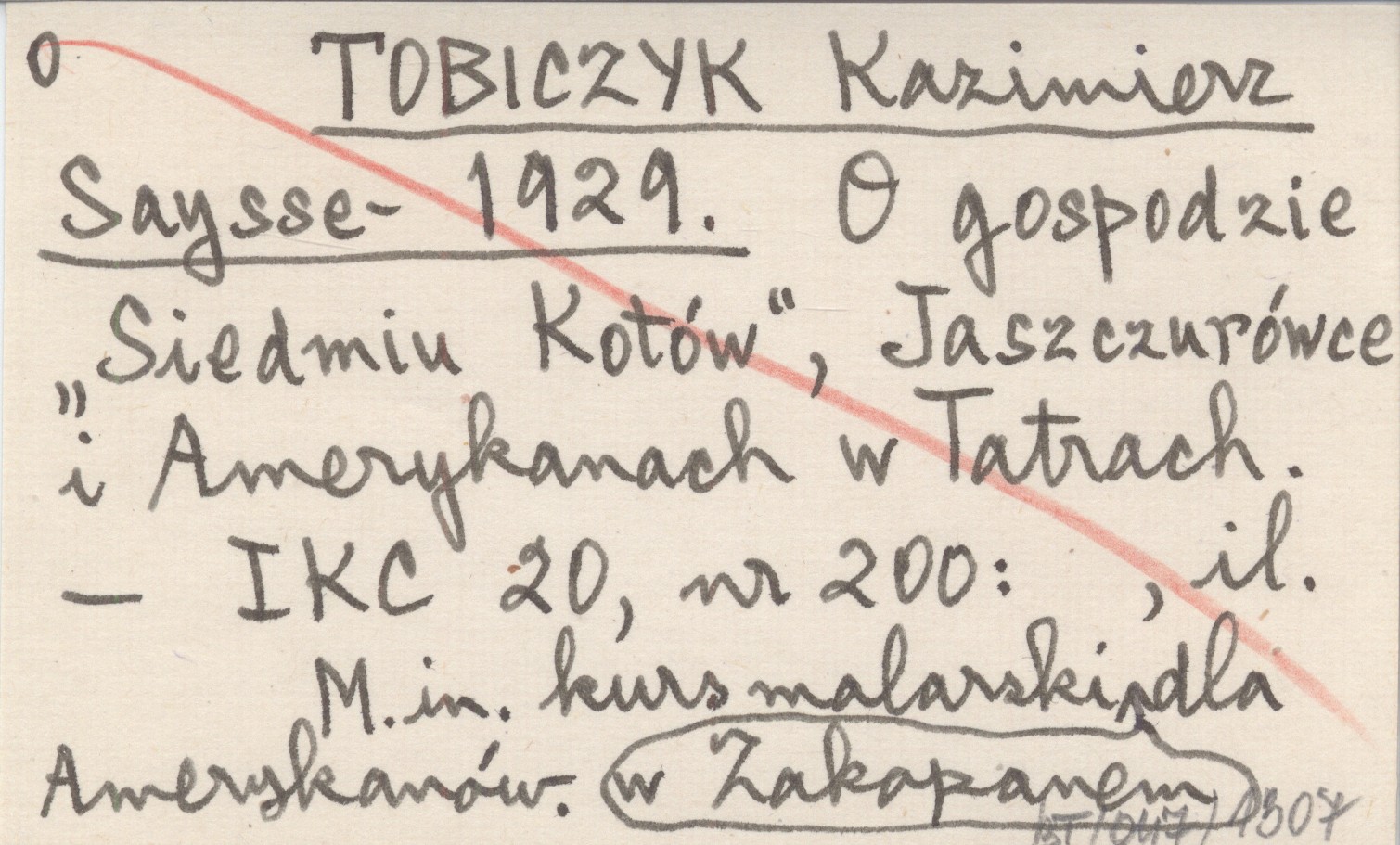 TOBICZYK Kazimierz Saysse- 1929 O gospodzie "Siedmiu Kotów", Jaszczurówce i Amerykanach w Tatrach.