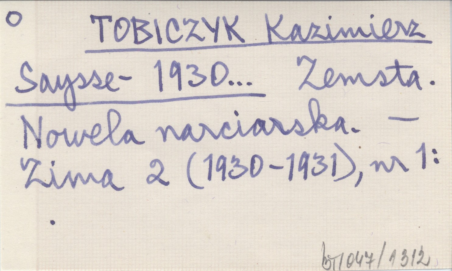 TOBICZYK Kazimierz Saysse- 1930... Zemsta. Nowela narciarska.