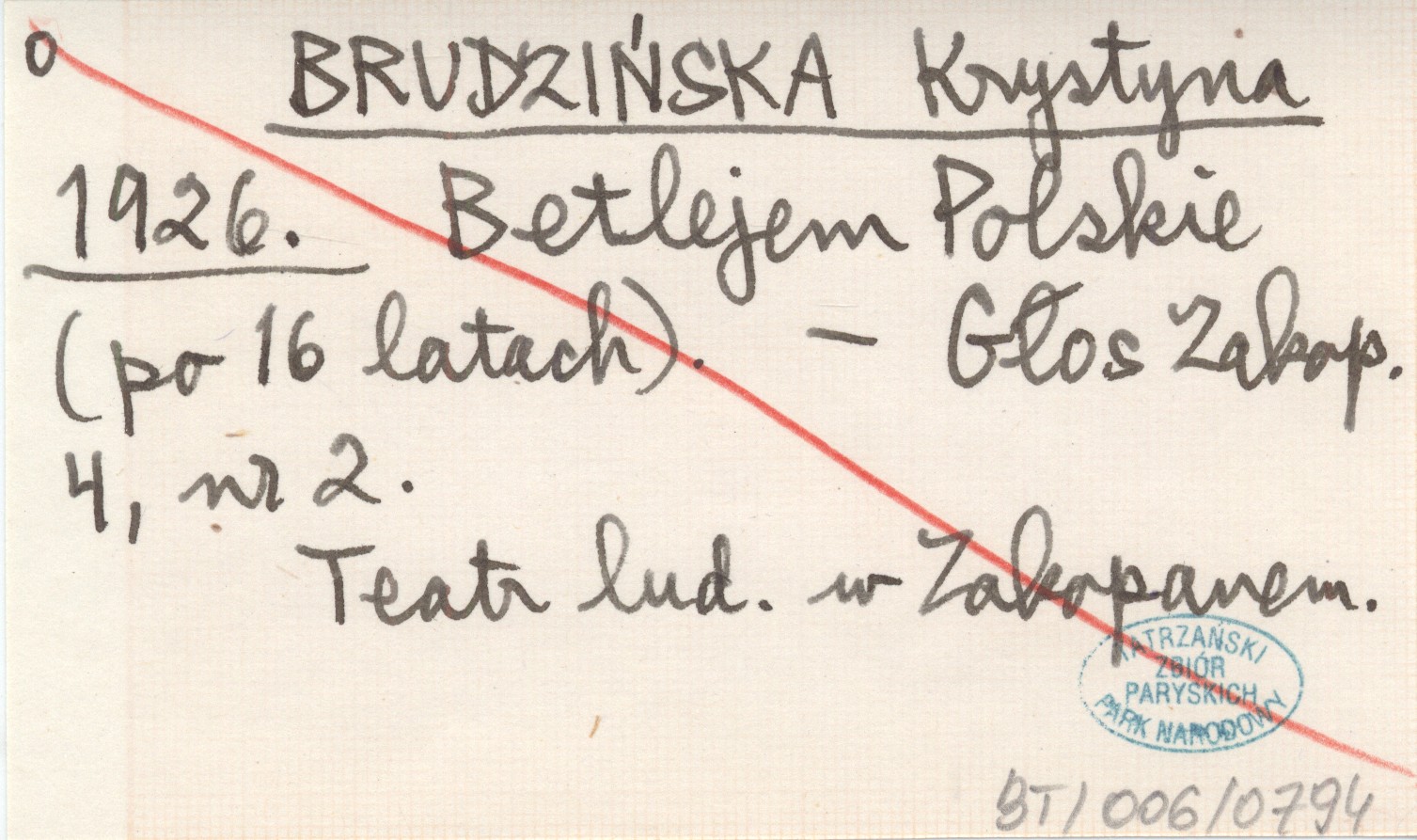 BRUDZIŃSKA Krystyna 1926 Betlejem Polskie (po 16 latach).