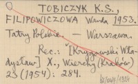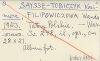 TOBICZYK Kazimierz Saysse- FILIPOWICZOWA, Wanda. ; 1953 Tatry Polskie.