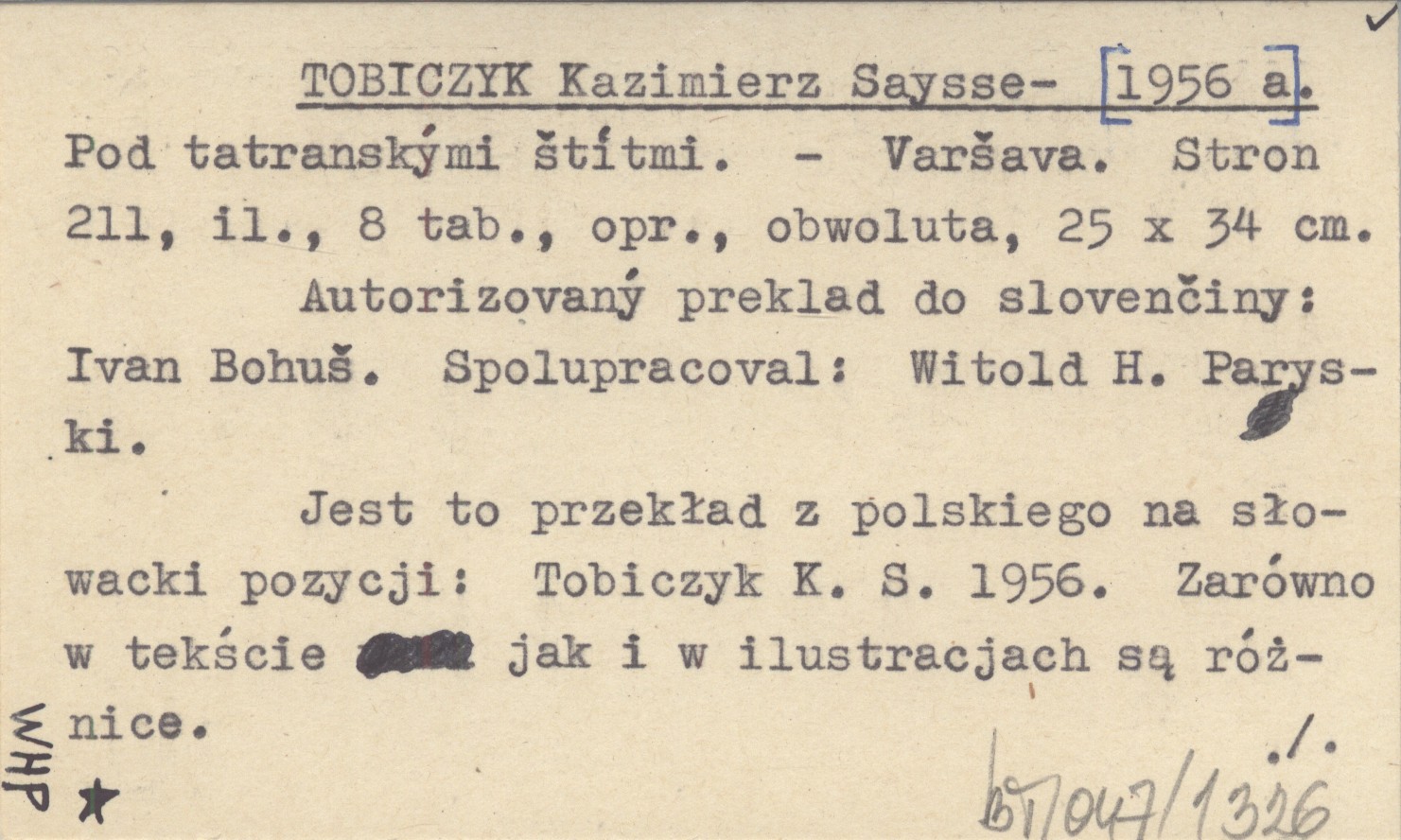 TOBICZYK Kazimierz Saysse- [1956 a] Pod tatranskými štítmi.