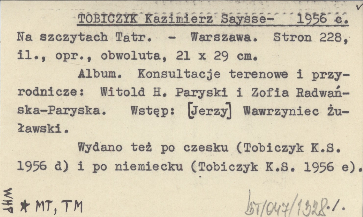 TOBICZYK Kazimierz Saysse- 1956 c Na szczytach Tatr.