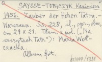TOBICZYK Kazimierz Saysse- [1956 b] In der Hohen Tatra.